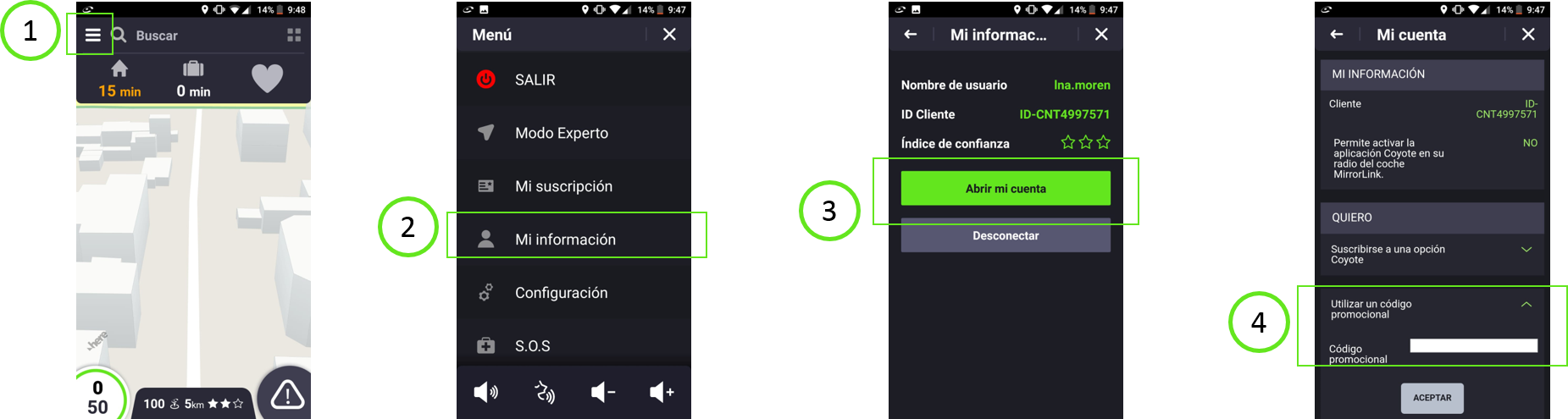 - Descarga gratuitamente la Aplicación Coyote, crea una cuenta o conéctate con tus claves si ya tienes una cuenta en la aplicación